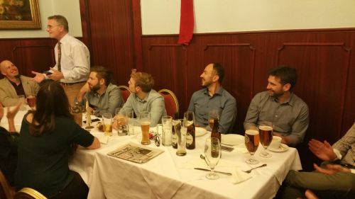 Als schließlich alle Mitglieder da waren und die Getränke am Tisch standen, hat unser Obmann Edgar die Anwesenden im Namen der Vereinsführung auf das Allerherzlichste begrüßt, eine gute Unterhaltung gewünscht und mit uns auf schöne Feiertage sein Glas erhoben. Nachdem es schon ziemlich spät war, hat Edgar auf eine längere Ansprache verzichtet und übergab das Wort an Milos.
