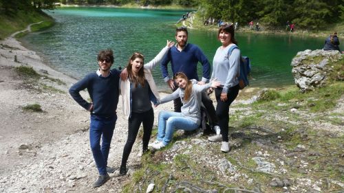 Gestärkt verließen wir mit einer halbstündigen Verspätung um 13 Uhr die Brauerei und stellten fest, dass sich das Wetter stark verbessert hatte und die Sonne schien. Bevor wir nach diesem üppigen Mahl und einer Menge ausgetrunkenem Bier so richtig einschlafen konnten, erreichten wir nach einer Fahrt von etwa einer Stunde die wunderschöne Landschaft, rund um dem "Grünen See". Der See liegt versteckt und umrahmt von Bergen bei Tragöß auf einer Höhe von 776 Metern. Mit ein paar Schritten erreichten wir das Seeufer. Da lag er vor uns der See, vollgefüllt mit kristallklarem Quellwasser in unglaublich blaugrünen diamantenen Farben. Wir konnten nicht anders, wir mussten den See am Ufer entlang ganz umrunden. Allerdings nur diejenigen machten mit, die gut zu Fuß waren, weil die Wege um den See unbefestigte Wald- und Schotterwege sind, die teilweise unter Wasser lagen oder darin endeten. Diejenigen, die sich trauten entdeckten hinter jedem Schritt ein noch schöneres Bild, das mit Handys unbedingt festgehalten werden musste. Nachdem wir für die Umrundung des Sees nur eine Stunde zur Verfügung hatten, mussten wir uns beeilen. Einige hatten den Weg unterschätzt und kamen erst nach der vorher verlautbarten Abfahrtzeit von 15 Uhr. Schnell noch ein Eis oder ein Bier und schon saßen wir wieder im Bus, Richtung Bad Vöslau. Im Bus dachte jeder an das gerade Erlebte und war froh darüber, das Naturjuwel, den "Grünen See" gesehen zu haben!